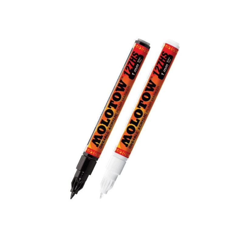 Akrilo pagrindu. Linija - 1 mm. Pusiau blizgus. Labai neskaidrūs. Kapiliaru sistema. Labai greitai džiūsta. Skiedžiami vandeniu arba acetono. Tinka beveik visiems paviršiams.. Užpildymas min 50 k. Vidaus ir lauko naudojimui. Keičiamos galiukas. Pagaminta Vokietijoje