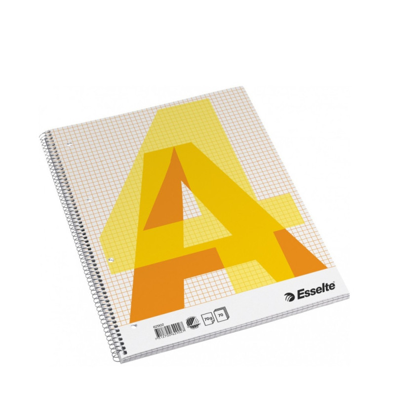 Bloknotas įvairus formatus su spirale. Langeliais. 70 lapų. Kartoninis viršelis. A4 perforuotas su keturiomis skylutėmis.
