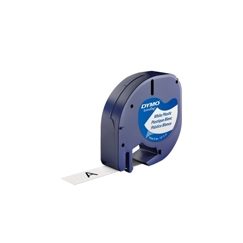 Juostelė Letratag plastik.12mmx4m balt./juod.spauda